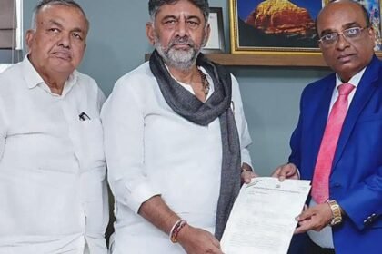 Deputy Chief Minister D.Ok. Shivakumar submitting a memorandum to State Election Commissioner…